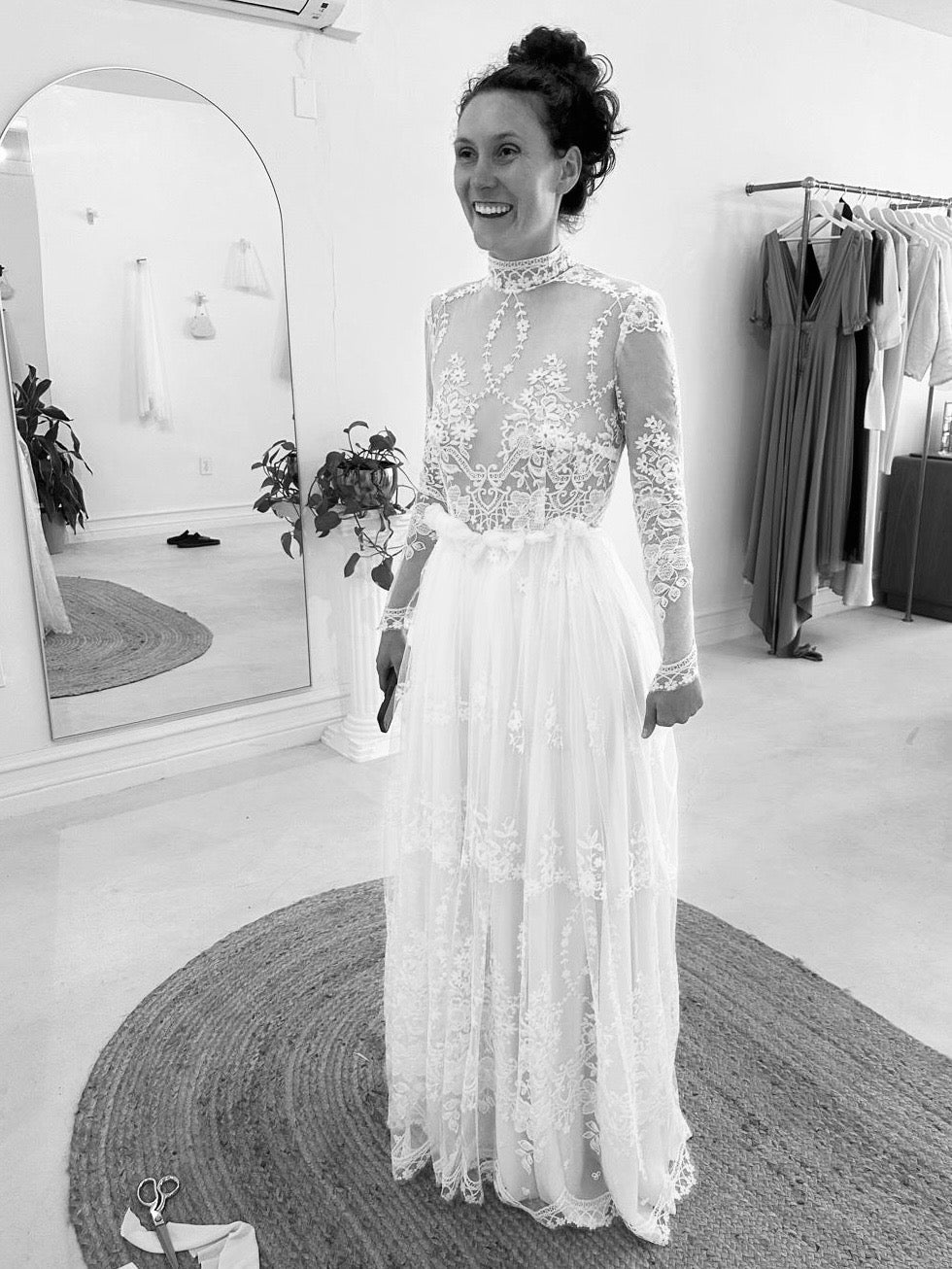 I had recently moved to San Diego, and a lot of my friends and family still live in Colorado, so I was looking for my wedding dress alone (with friends and family on FaceTime!). I had been to appointments at other showrooms, and I didn't feel like their ethos fit my vision for the wedding. I felt like the experience was a business deal, rather than a collaboration to create a timeless piece of art, meant to be passed down to the next generation. When I got to your showroom, everything was different. Jess was amazing to work with. She made me feel like we were old friends, and she listened to my thoughts on each dress we tried on. She also listened to my mom and my best friend's thoughts on Facetime : ) She fit right in! Jess made me feel like she had all the time in the world to talk about the dress with me, and she helped brainstorm ideas for over an hour. It was the first time I was really excited about what I was going to wear to my wedding. I knew I'd be in the best hands.